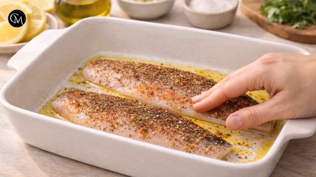 Set your oven to 180°C (350°F) and allow it to fully preheat. Proper oven temperature is critical an oven that’s too hot dries out fish, while a cooler oven leads to uneven cooking.