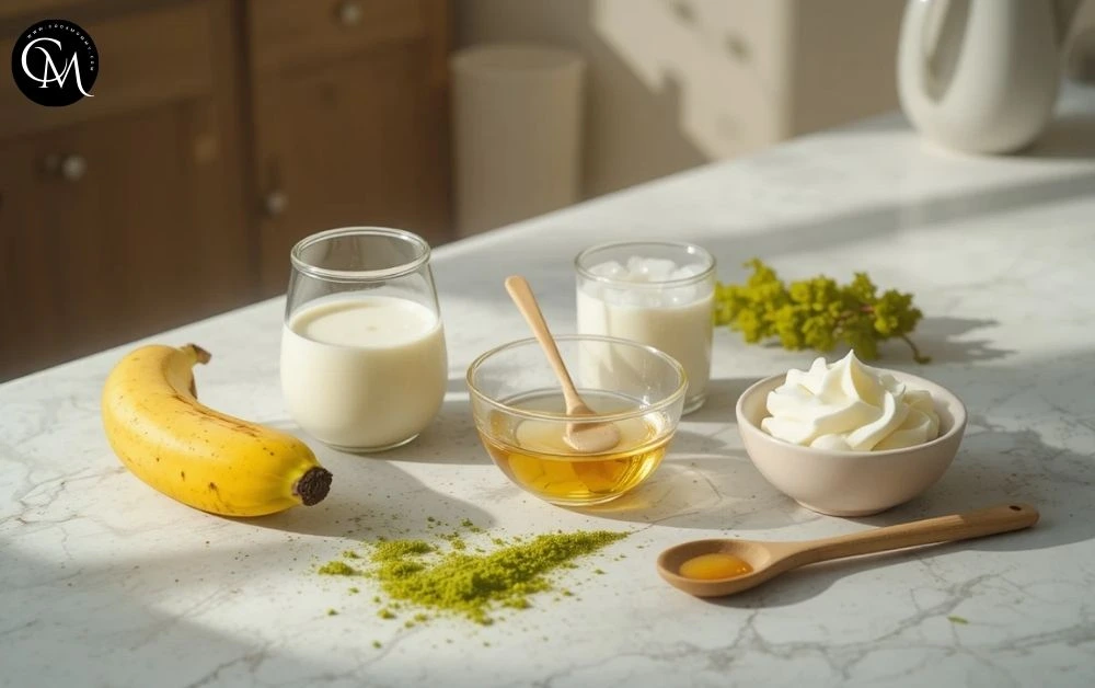 You’ll only need a few simple ingredients to bring Banana Cream Matcha to life. Each one adds a unique touch of flavor, texture, or nutrition.