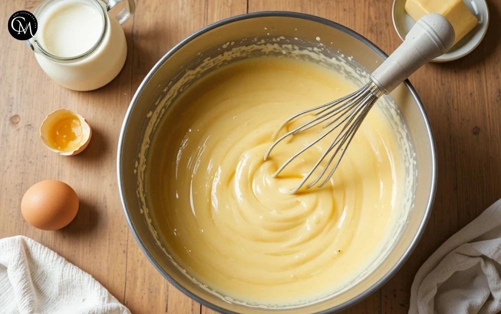In a separate bowl, beat the eggs with buttermilk, melted butter (or oil), and vanilla until the mixture looks smooth and uniform.