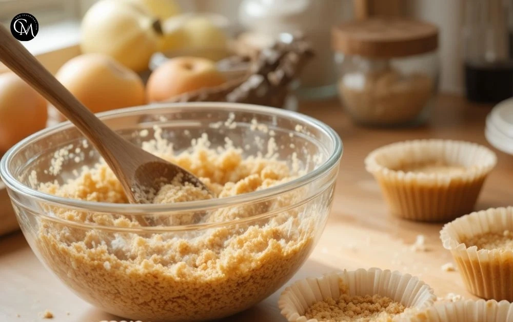In a bowl, combine graham cracker crumbs, sugar, and melted butter. Stir until the texture resembles wet sand. Spoon about a tablespoon into each cupcake liner and press firmly to form the base. Bake at 325°F (160°C) for 5 minutes to set.