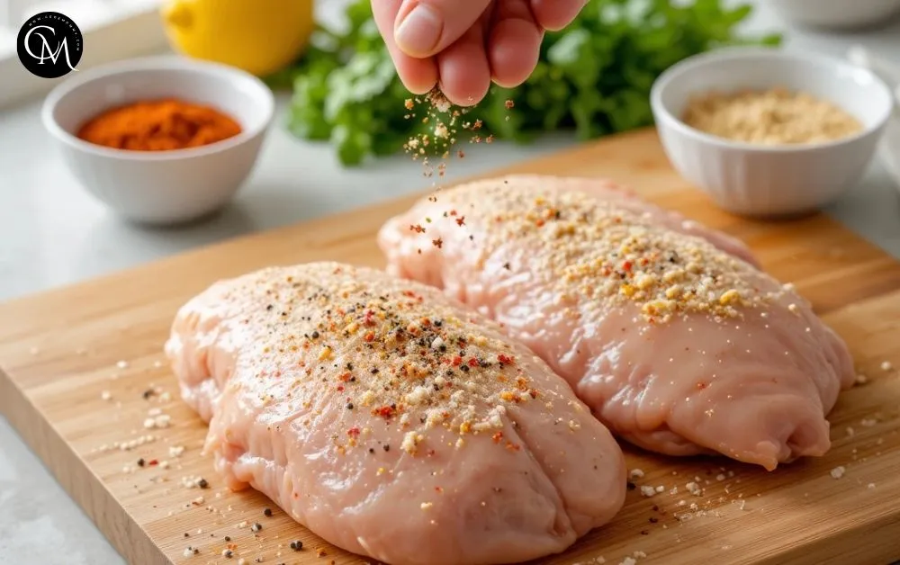 Place the chicken breasts between two sheets of parchment paper and pound gently until they’re about ½-inch thick. This ensures even cooking and prevents dry spots.