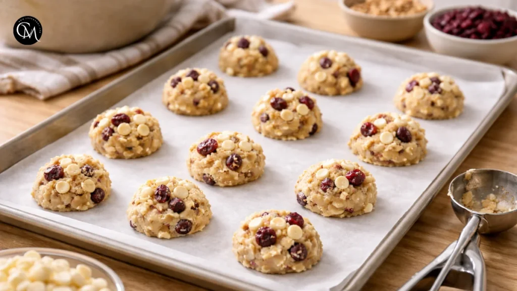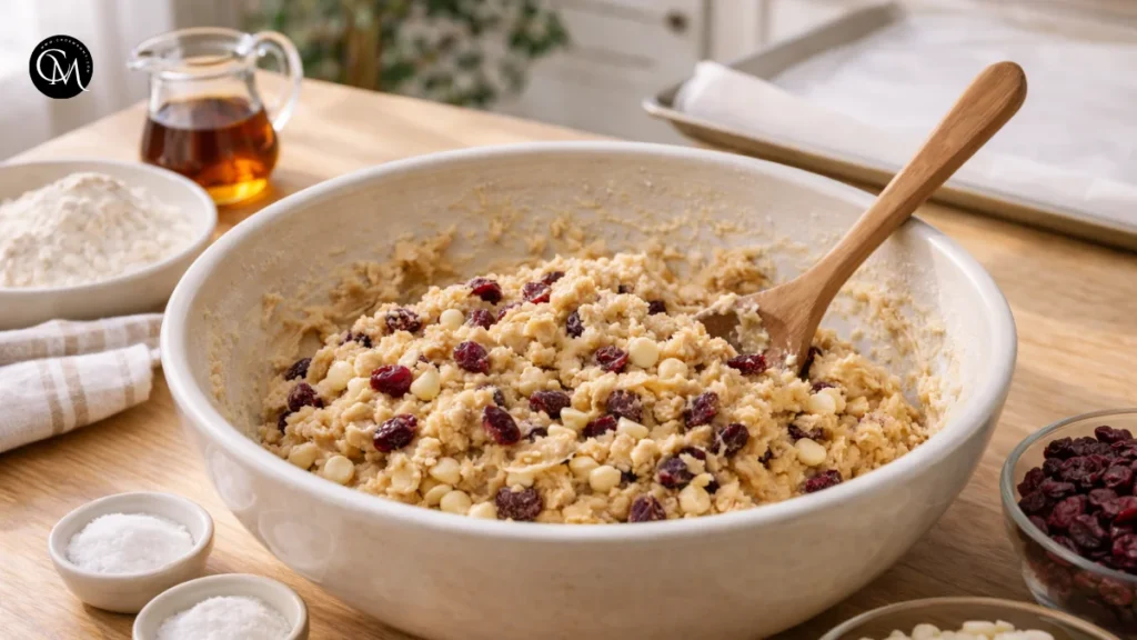 This is the stage where balance really comes together. You want every cookie to have enough cranberry for brightness and enough white chocolate for creaminess. When the mix-ins are distributed evenly, each bite feels complete instead of overly sweet or overly tart. That contrast is what makes these cookies memorable.