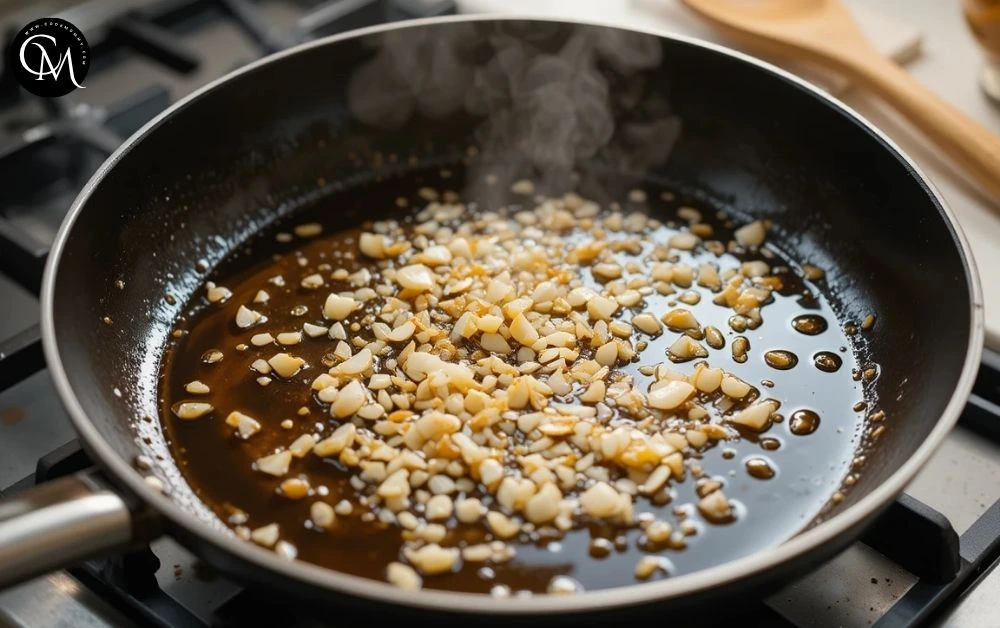Heat oil in a skillet. Add garlic and onion, cooking until golden and fragrant this builds the flavor base.