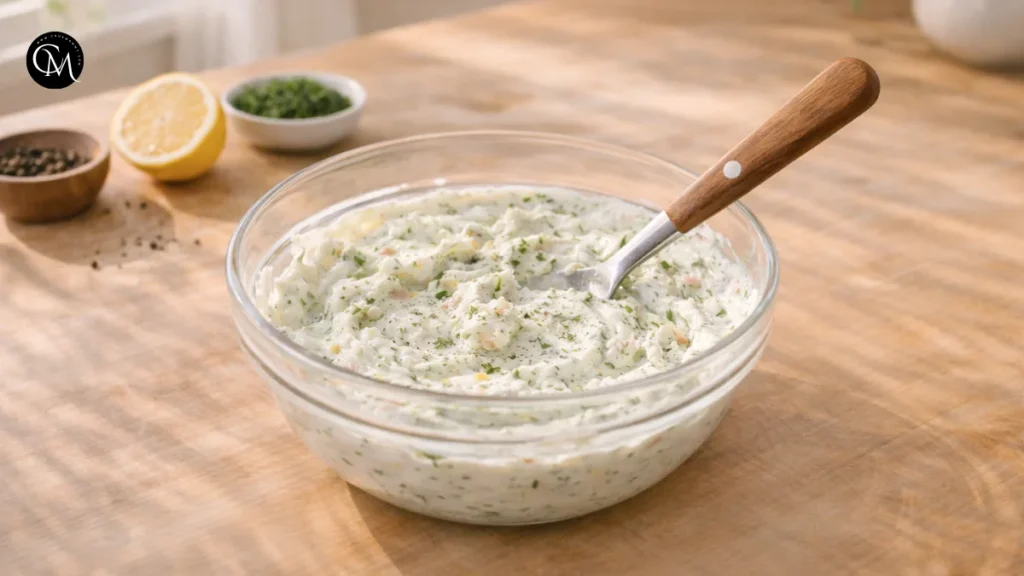This is the flavor base that holds the whole recipe together. The cream cheese provides structure, while the yogurt loosens it just enough to make it spoonable. Lemon cuts through the richness, and herbs keep the mixture bright and fresh.