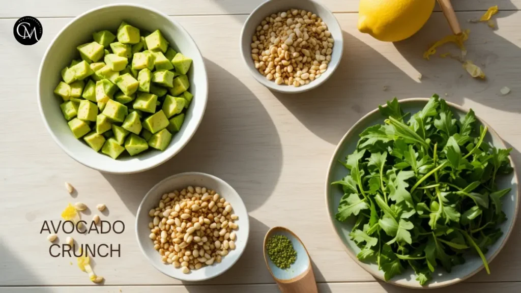 5. Avocado Crunch: Diced avocado, toasted pumpkin seeds, lemon zest, arugula.
