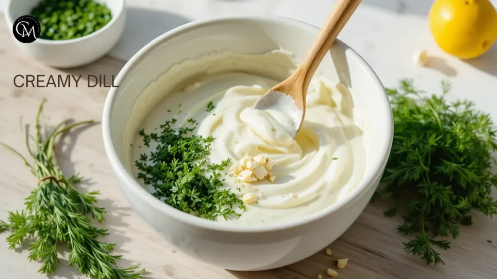 4. Creamy Dill: Greek yogurt, chopped fresh dill, minced garlic, splash of lemon juice.