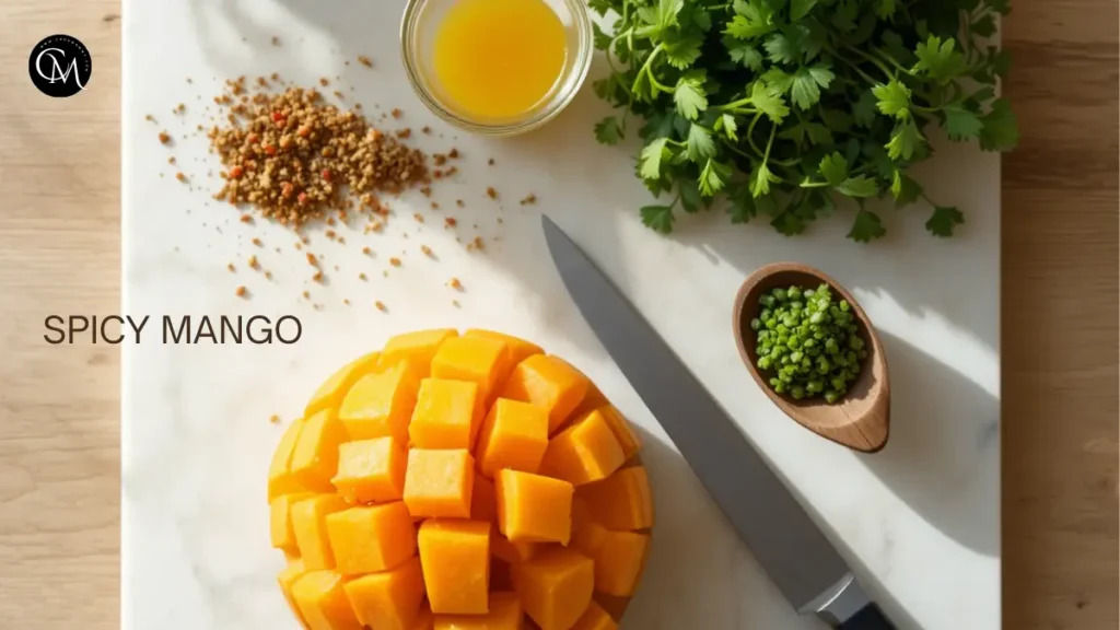3. Spicy Mango: Cut the mango into cubes, then chop the chili flakes and add the lemon juice and coriander.