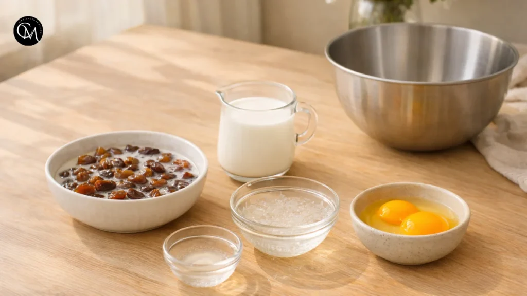 Bloom the gelatin by sprinkling it over the cold water in a small bowl. Let it sit for 5 minutes. At the same time, separate your eggs, measure the cream, and chill a mixing bowl for whipping. Preparation matters here because Date Blossom Mousse comes together in stages, and once the base is warm, you want everything ready.