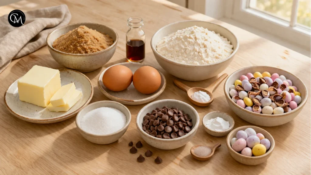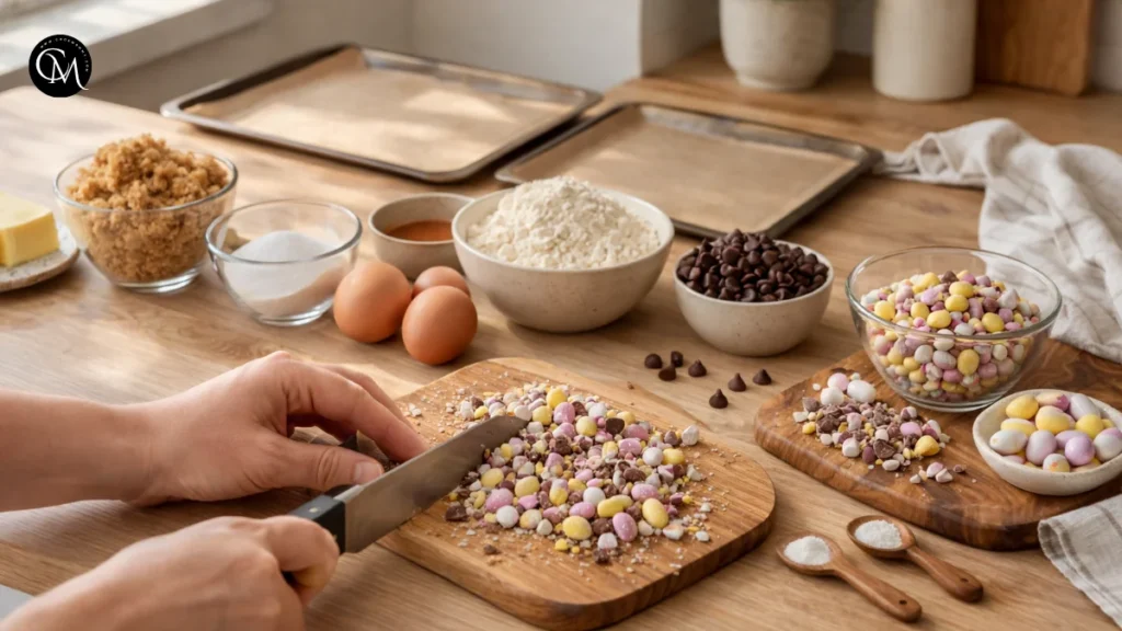 Preparation matters because cookie dough comes together fast once the butter and sugar are mixed. If you stop midway to chop candy or hunt for flour, the dough can sit too long and soften. For Egg Cadbury Cookies, I also like lining the baking trays before I begin. It sounds simple, but being organized helps you move quickly and keeps the dough cool.