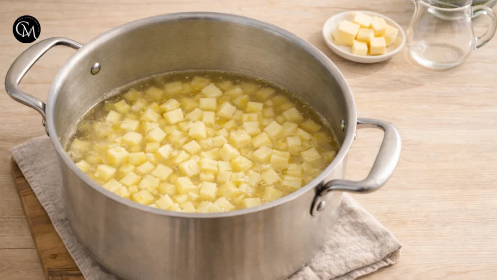 Tip: Smaller potato cubes soften faster and release starch, naturally thickening the broth.