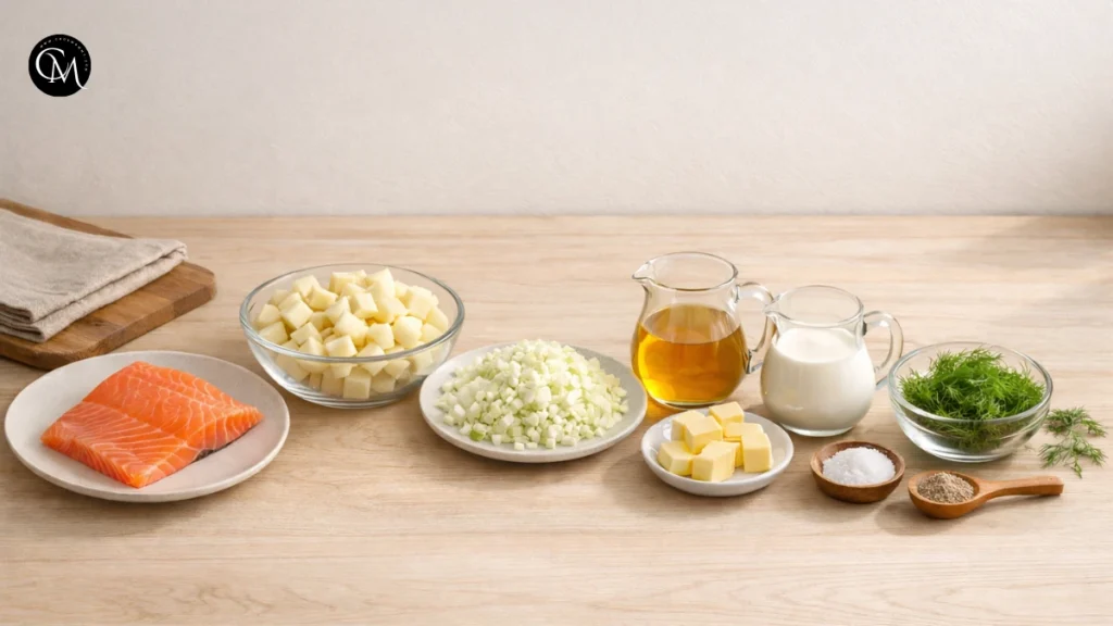 A great Finnish Salmon Soup relies on fresh, simple ingredients. Each one has a clear purpose and contributes to the soup’s signature Nordic character.