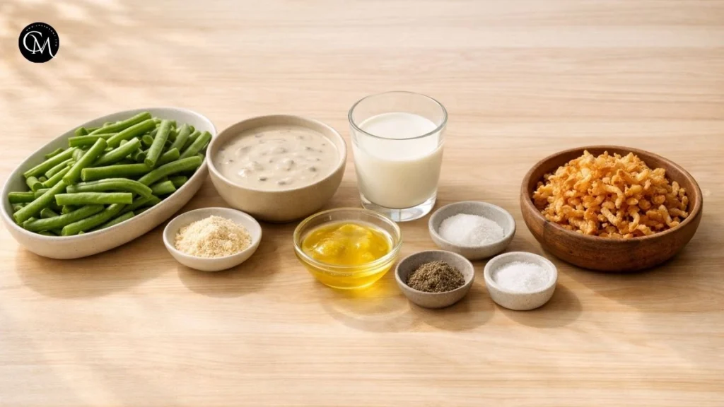 A great Green Bean Casserole starts with simple, familiar ingredients that work together to create creamy balance and savory depth.