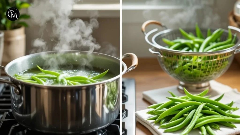 Wash and trim fresh green beans, then blanch them in boiling salted water for 3–4 minutes. This keeps them vibrant and tender-crisp. Drain and pat dry to prevent excess moisture.