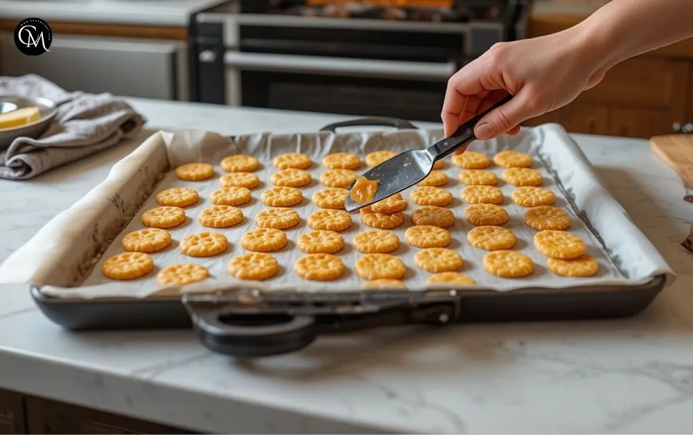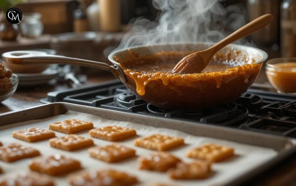 Preheat your oven to 400°F (200°C). Line a baking sheet with parchment paper, then arrange the crackers evenly in a single layer to ensure smooth caramel coverage.