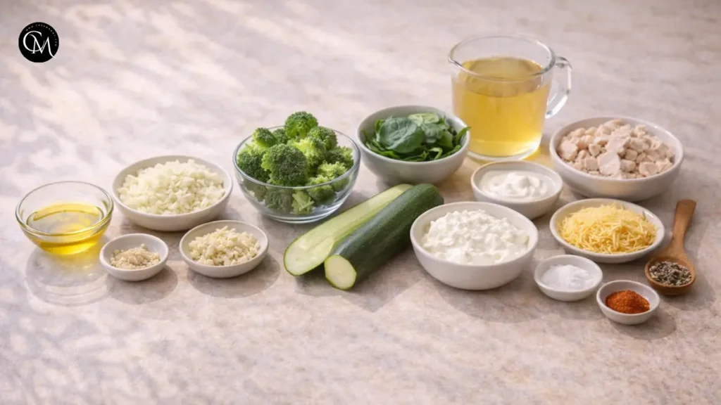 Great soup starts with great ingredients. Here’s what you’ll need to make a flavorful High Protein Broccoli Soup, plus easy swaps to match your preferences: