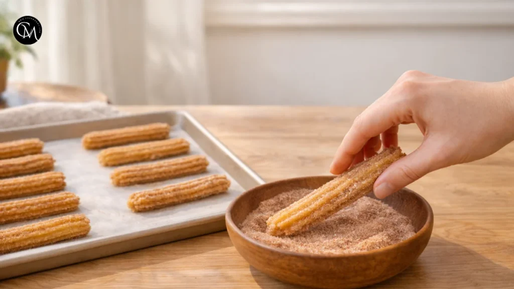 This is also the point where flavor balance matters. Traditional churros are often heavily coated, but a lighter dusting gives you the cinnamon-sugar experience without overwhelming sweetness. If you are watching homemade churros calories closely, this simple change makes a real difference.