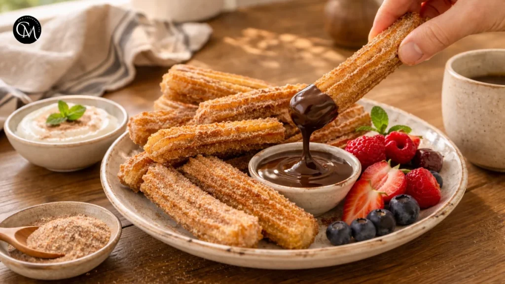 This is the kind of chef-style advice that saves a homemade churros from becoming too much. Add only what the churros need. A tiny pinch more cinnamon, a spoonful of yogurt dip, or a few berries can round everything out better than another heavy dusting of sugar.