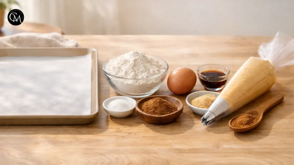 Preparation matters here because churro dough thickens as it cools. If you stop midway to search for cinnamon or a piping tip, the dough can become harder to pipe smoothly.