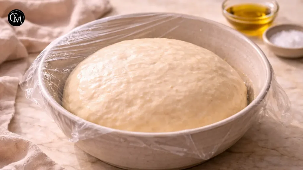 Put the dough in a greased bowl, cover it, and allow it to rest about 45 minutes until it doubles.