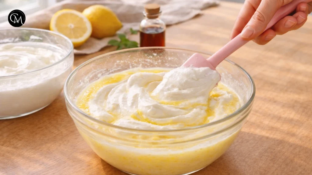 Why folding matters: Gentle folding preserves the air bubbles that give lemon mousse its light, airy texture.