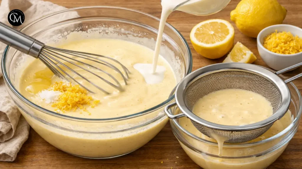 Beat the eggs and sugar in a bowl until fully combined and silky. Add lemon juice, zest, cream, and salt. Mix well and strain through a sieve for extra smoothness.