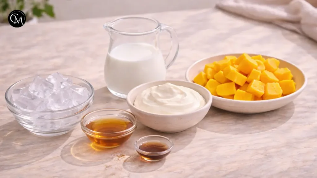 Add a splash of pure vanilla extract and honey (if desired). Vanilla deepens the flavor while balancing mango’s natural sweetness.