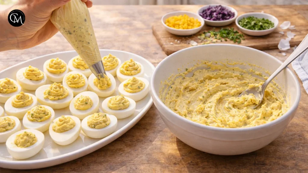 - Filling the eggs too early without covering: Exposed filling dries out in the refrigerator. Cover loosely and chill until serving time.