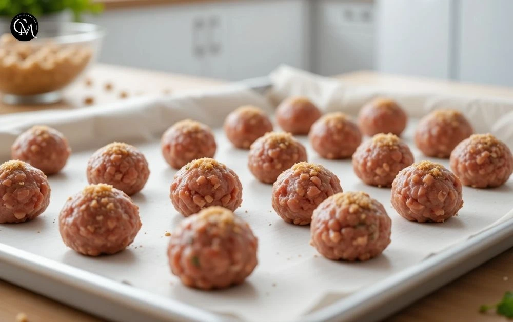 Form small, evenly sized balls (about 1 inch each) and arrange them on a tray. Chill in the refrigerator for 10–15 minutes. This helps the meatballs hold their shape while cooking and improves flavor.