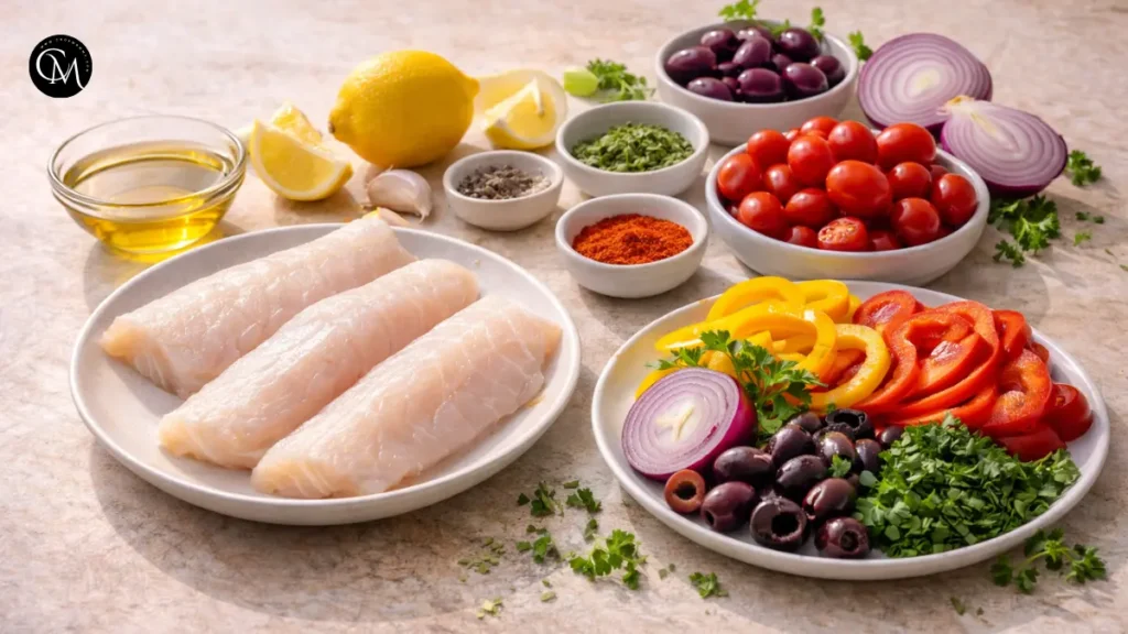 Here’s what you’ll need to make flavorful Mediterranean Baked Fish: