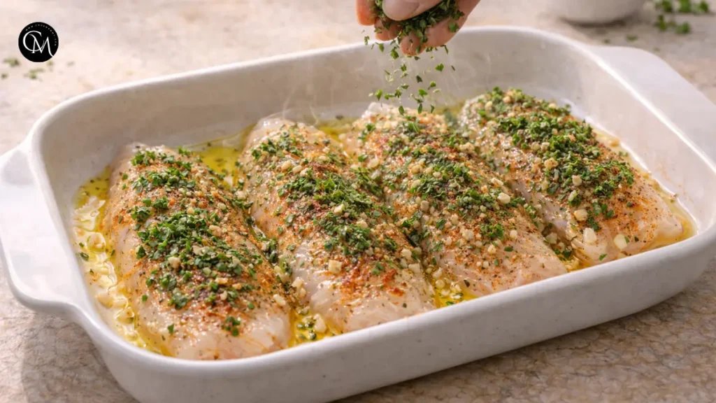 Sprinkle the fish with a blend of oregano, rosemary, and parsley for bold Mediterranean aroma. These bring earthiness, citrusy brightness, and depth.