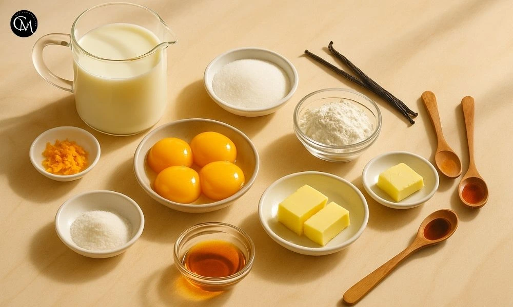 Creating perfectly smooth pastry cream doesn’t require complicated ingredients, but each one plays an important role in the final texture, aroma, and thickness. Here’s a well-balanced list along with easy substitution options.