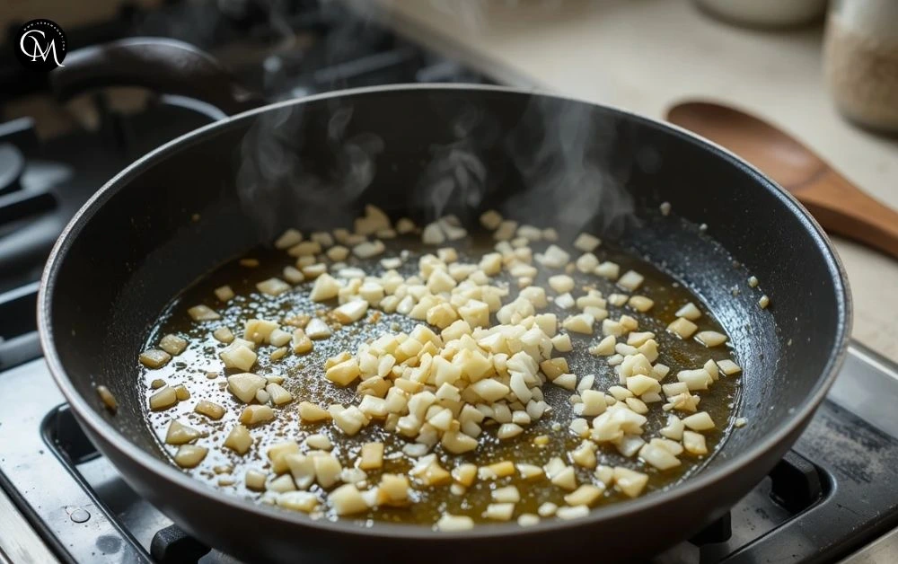 Heat olive oil in a skillet over medium heat. Add onion and garlic, cooking until soft and fragrant. This step builds the flavor foundation.