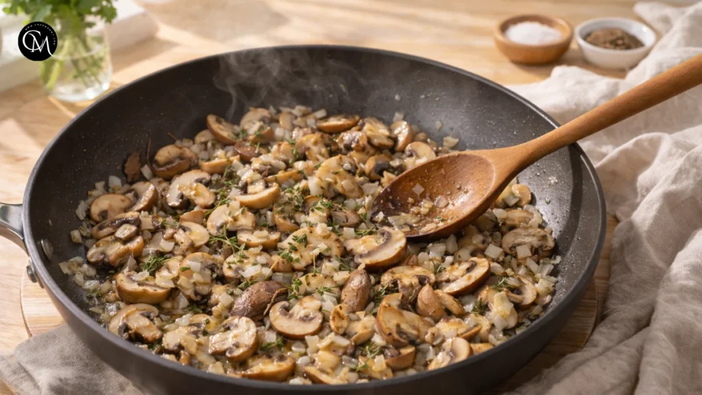 This step is where the dish develops its personality. Mushrooms hold a lot of water, and if you rush them, they steam instead of brown. Browning creates a deeper savory flavor and keeps the final quiche from turning watery. When the onions become sweet and the mushrooms look golden at the edges, you are building the foundation that makes the finished quiche taste layered instead of flat.