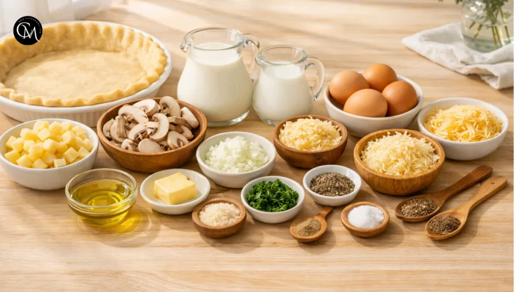 The real flavor stars here are the potatoes and mushrooms. Potatoes bring softness and body, while mushrooms add that rich, almost meaty depth that makes the quiche feel more substantial.