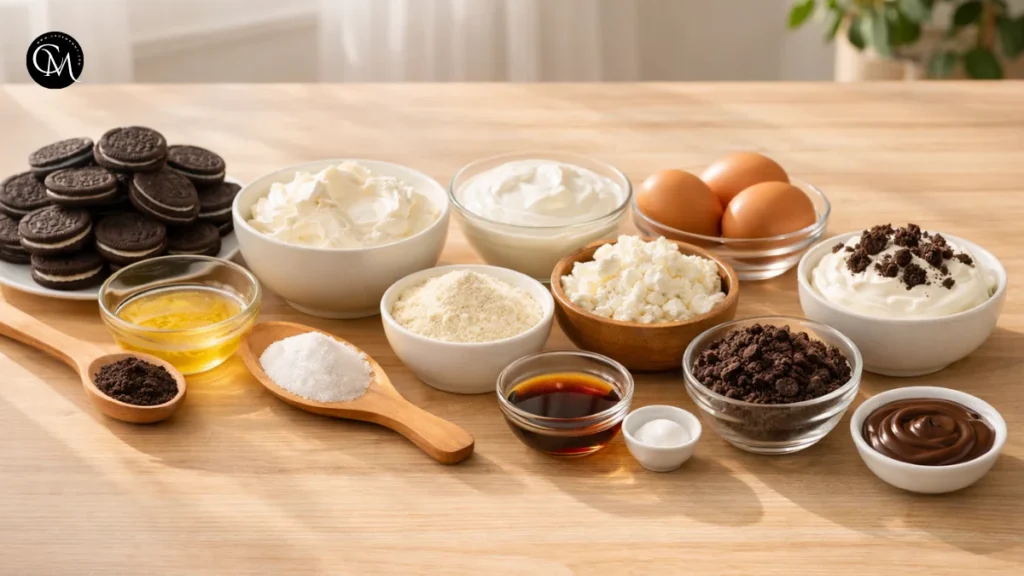 Light cream cheese keeps the filling creamy without feeling heavy. Greek yogurt adds tang and structure. Cottage cheese sounds unusual, but once blended, it disappears into the filling and gives your Protein Oreo cheesecake more body and protein. Vanilla protein powder works best because it blends into the cheesecake flavor naturally. For a lower-sugar version, use reduced-sugar cookies and a granulated sweetener designed for baking. For gluten-free needs, choose gluten-free sandwich cookies.