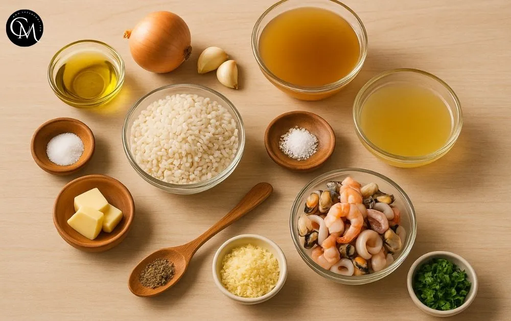 The charm of Seafood Risotto lies in its balance: creamy rice infused with seafood essence and layered with delicate flavors. Here’s what you’ll need: