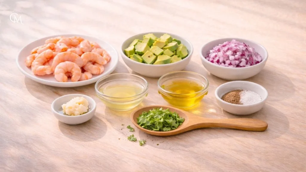 Here are the ingredients for this easy shrimp and avocado dish: