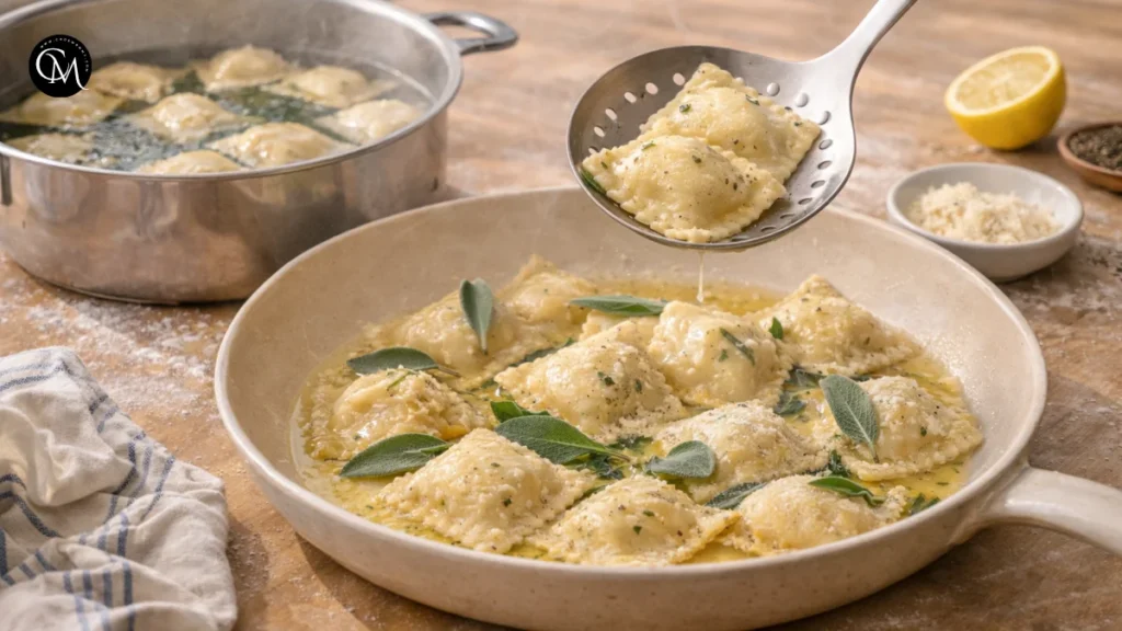 Lift carefully with a slotted spoon and transfer to warm melted butter with sage or a light drizzle of olive oil. Taste one before serving the full batch. This is your moment to adjust. Adjust the final taste as needed with extra Parmesan, a pinch of black pepper, a little lemon zest, or a spoonful of pasta water.