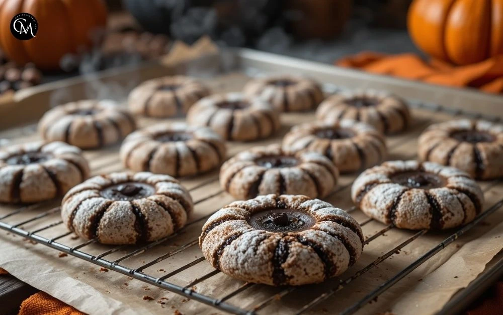 Allow cookies to cool on the tray for 5 minutes before moving them to a wire rack. As they cool, the crinkle pattern will deepen, revealing their spooky charm.
