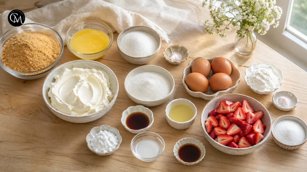 Cornstarch helps stabilize the filling. It gives Strawberry Cheesecake a smoother structure and makes it easier to slice once chilled.