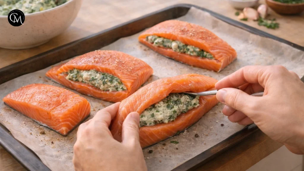 Chef’s tip: Resting allows juices to redistribute, making tender stuffed salmon noticeably juicier when sliced.