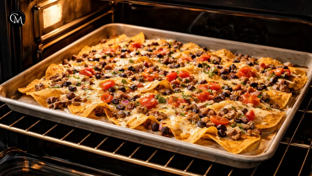Once the cheese melts, your job is done. Leaving nachos in the oven too long dries out the chips and causes cheese to separate, turning greasy instead of stretchy. Pull them out while they still look vibrant and glossy carryover heat will finish the job.
