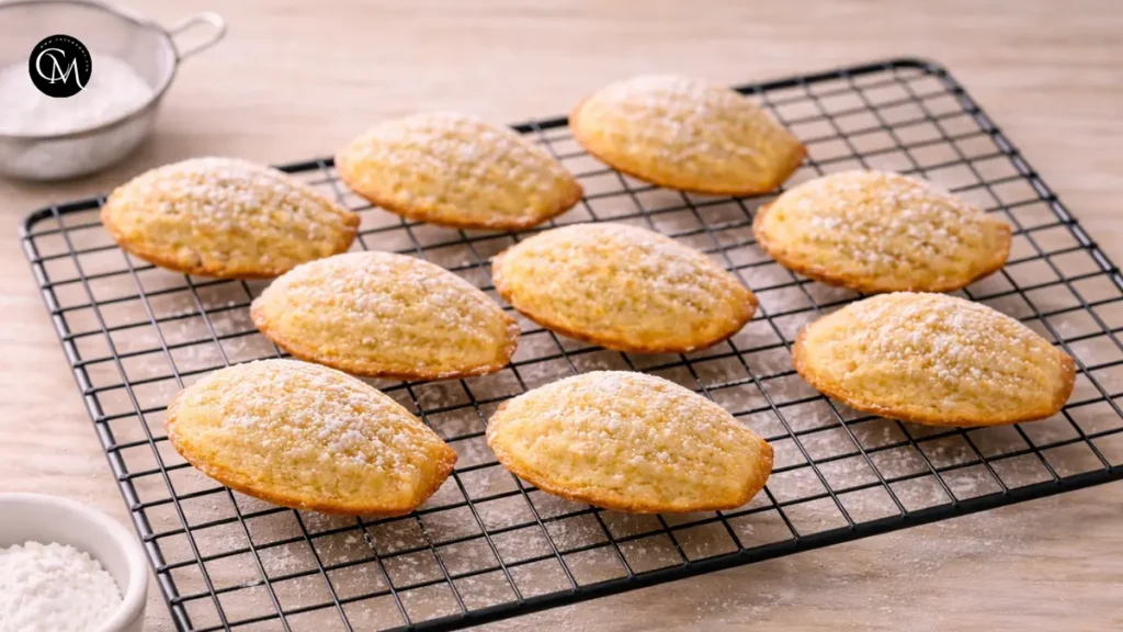 Allow the madeleines to rest in the pan for five minutes, then transfer them to a cooling rack. Enjoy warm or lightly sprinkle with powdered sugar.