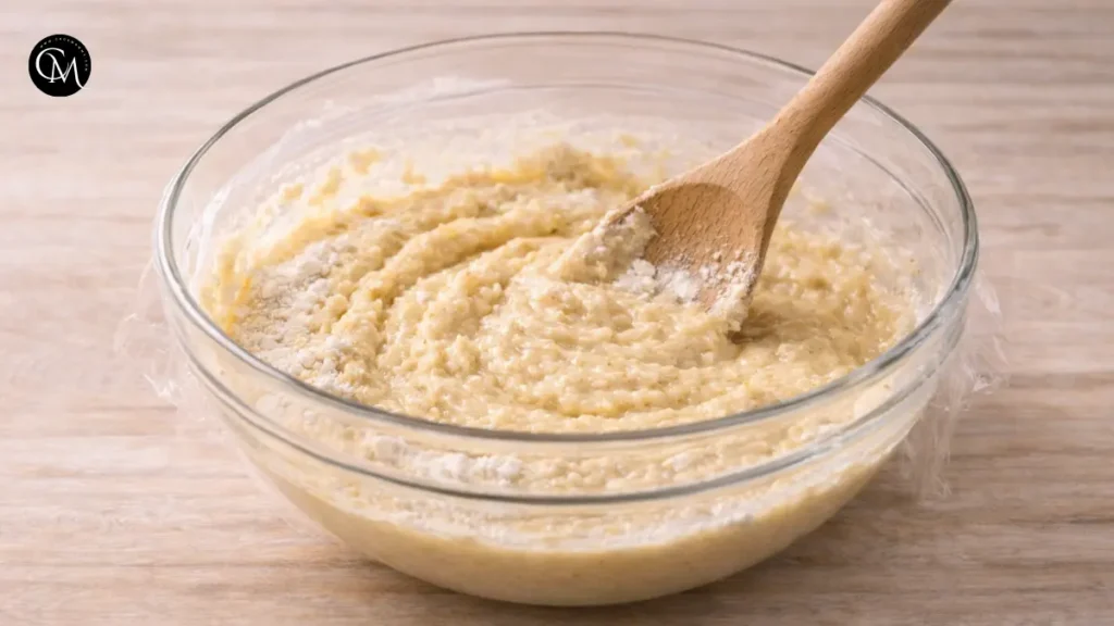 Slowly fold the dry mixture into the wet ingredients, stirring only until everything comes together. Do not overmix. Cover the batter and refrigerate for 30 minutes to allow it to firm up.