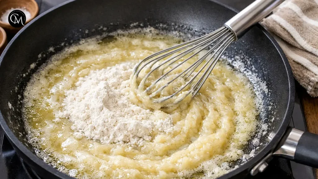 Warm the butter in a pan over medium heat until fully melted. Sprinkle in the flour and whisk constantly for 1–2 minutes to create a smooth thickening base. Pro Tip: Don’t rush this step; undercooked roux can lead to a grainy texture.