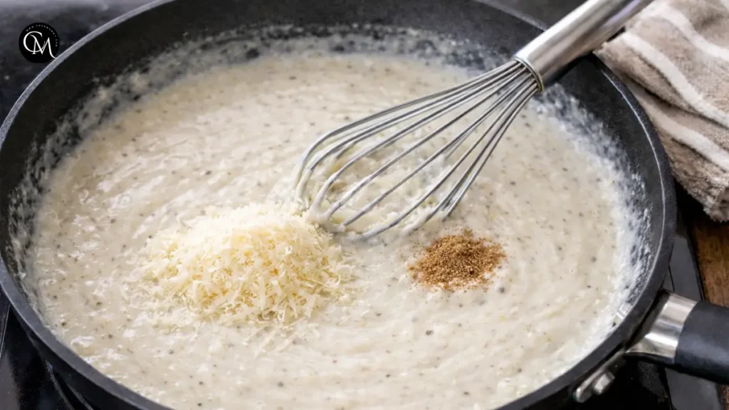 Remove from heat and stir in grated Parmesan and a pinch of nutmeg. These ingredients add depth and umami without overwhelming the flavor.