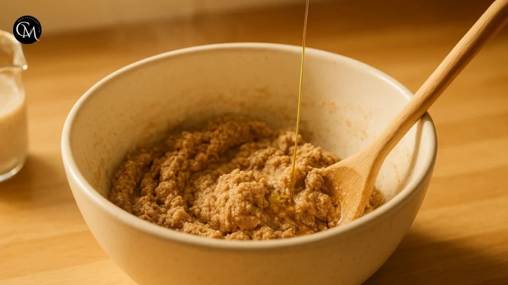 Mix warm water with yeast and a touch of honey. Let it rest for 5–10 minutes until foamy. This confirms your yeast is alive and ready, preventing flat Wholemeal bread.